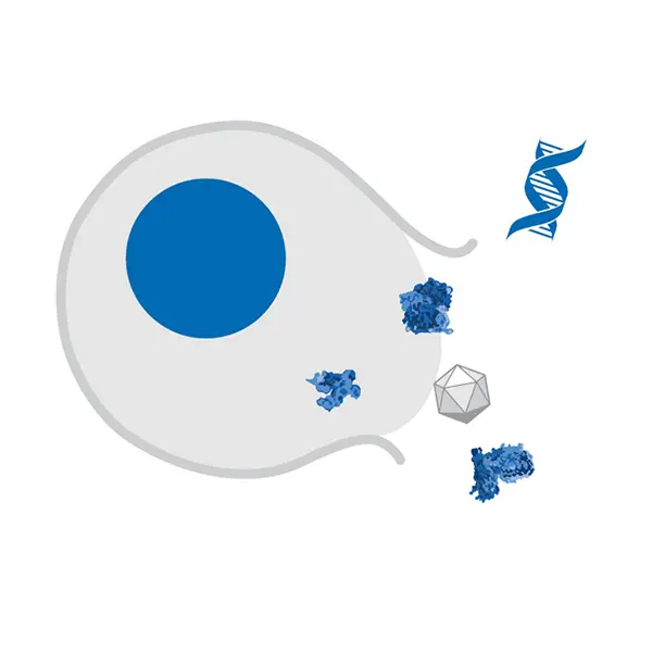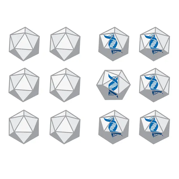 A few days later, the cells are broken open to release the full AAV gene therapy vectors, empty AAV vectors, and other components, like DNA and protein fragments.