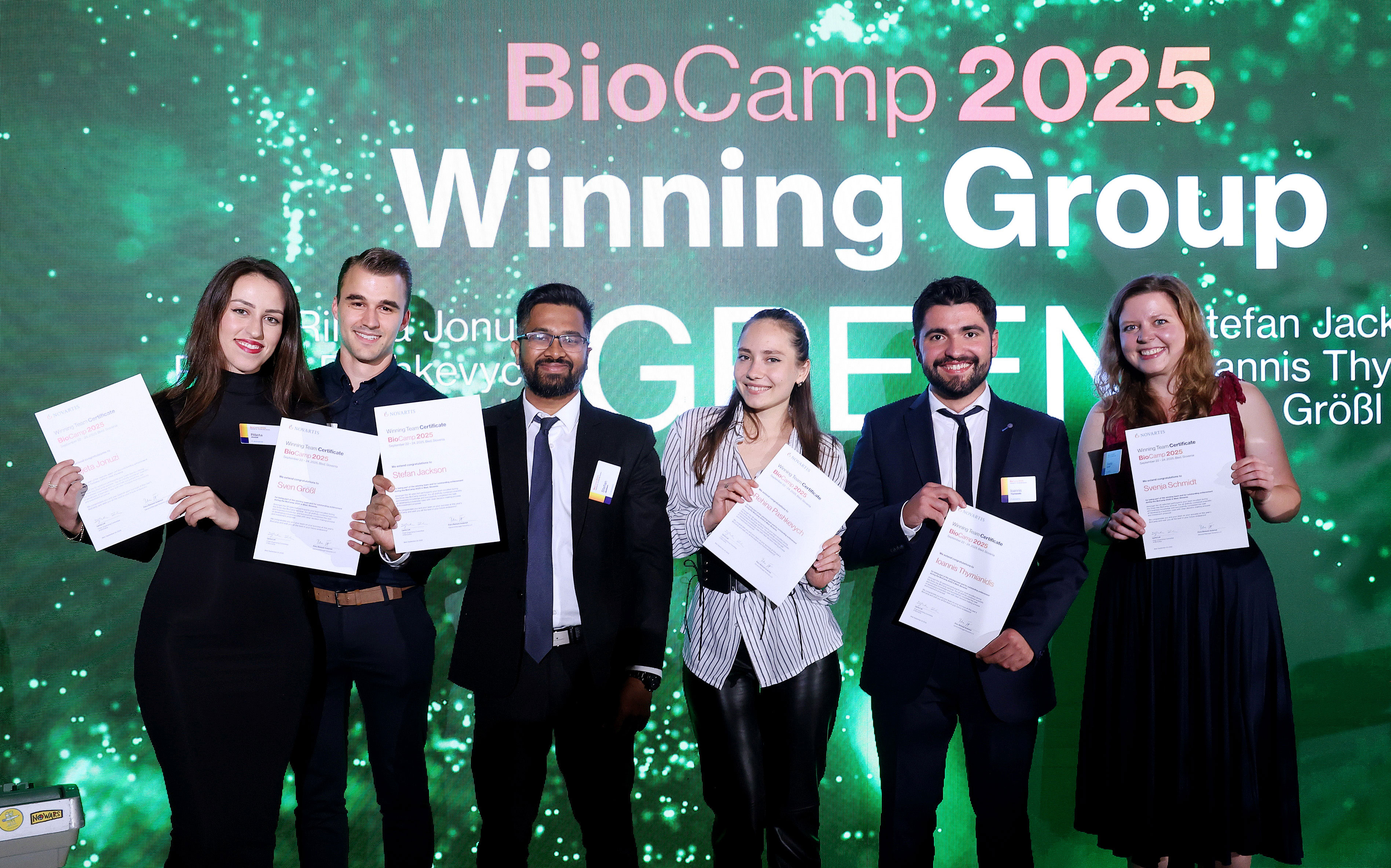 36 ausgewählte Studierende aus 11 Ländern diskutierten, wie Künstliche Intelligenz die Forschung, Di-agnostik und Patientenversorgung verändert. Sie erarbeiteten praxisnahe Lösungen für konkrete Heraus-forderungen der Pharmaindustrie und präsentierten ihre Ergebnisse einer Fachjury. Als Gewinner des diesjährigen BioCamps wurden Ian Ghezzi aus Italien und Patrick Müller aus Deutschland ausgezeich-net. Das beste Team setzte sich aus Sven Größl, Stefan Jackson, Riljeta Jonuzi, Rehina Pashkevych, Svenja Schmidt und Ioannis Thymianidis zusammen.