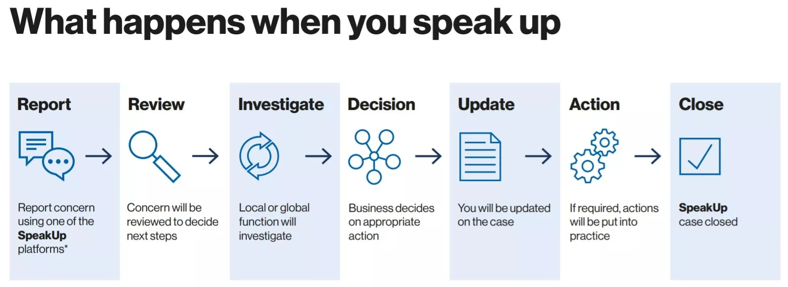 В Новартис, всички са задължени да сигнализират за нарушения в Етичния код. SpeakUp отделът дава на служителите и хората извън Новартис канал, чрез който да могат да сигнализират за неетично поведение.
