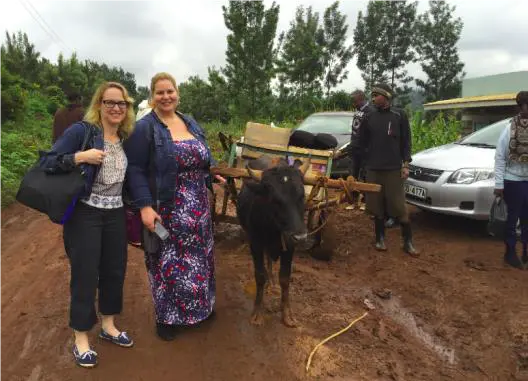 Photo: Novartis Pharmaceuticals Canada Inc. volunteers help guide a cart carrying supplies to the Karucho Primary School in Kenya prior to a health camp organized by the Novartis-sponsored group Familia Nawiri.