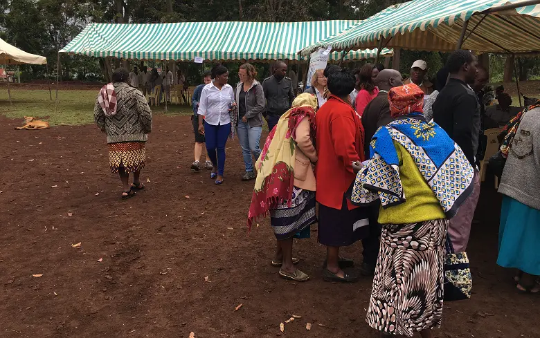Getting villagers to attend the health camps is not a simple task. Different approaches are taken including a parade-like procession. While in Kenya, Kelly Anderson, Marie-Anne Paquette and Élodie Destable participated in a procession, as did the county’s Minister of Health, - a testament to the importance of the health camps in remote communities. Set-up was at a local elementary school and the lack of equipment and supplies didn’t deter the Familia Nawiri project from delivering health education and awareness on key issues to members of the community.