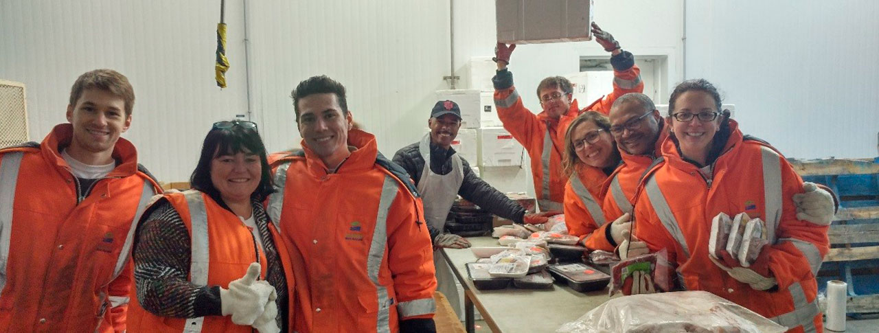 Mission Bon Accueil est au service des Montréalais dans le besoin depuis plus de 125 ans. Plusieurs associés se sont joints à Winselow Tucker, chef de Novartis Oncologie Canada, pour trier et emballer de la viande et d’autres produits dans le congélateur.