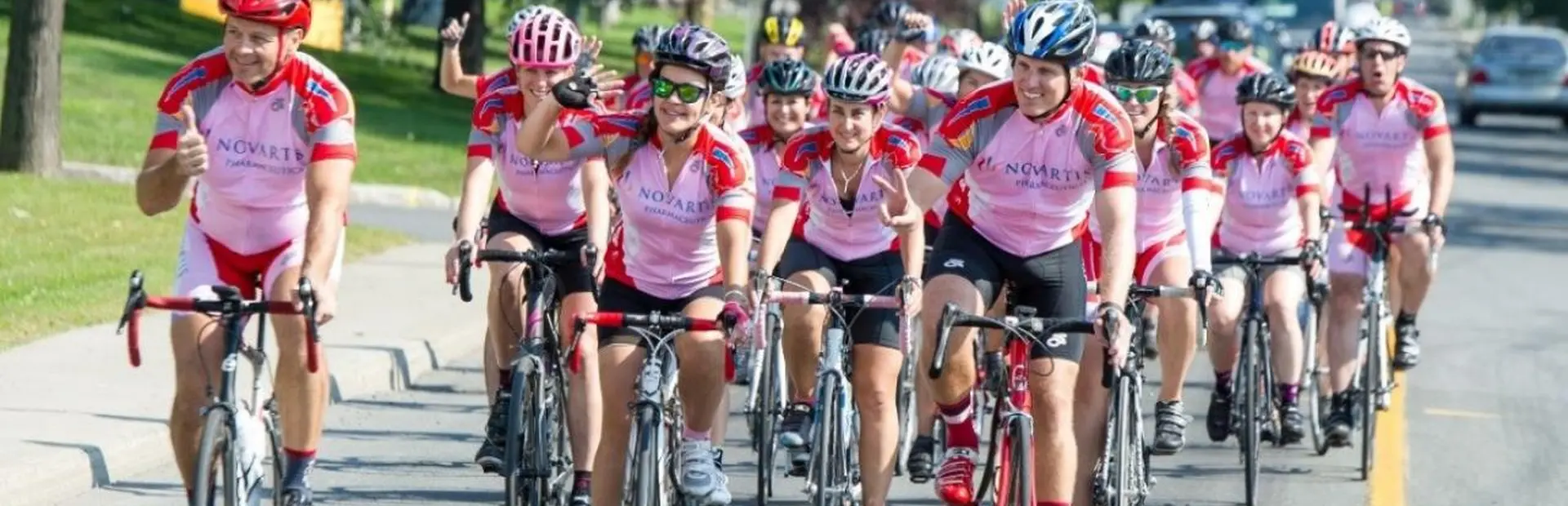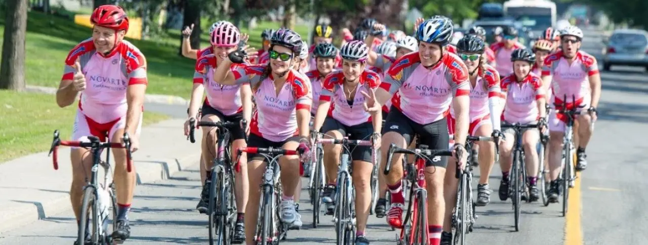 Depuis douze ans, les employés de Novartis manifestent leur engagement envers les personnes touchées par le cancer du sein annuellement. La Campagne Roule pour la vie a vu le jour grâce à quelques membres du personnel désireux de sensibiliser la population au cancer du sein et d’amasser des fonds pour soutenir la recherche associée à cette maladie. Ces employés ont donc décidé de participer à un événement cycliste de longue distance dont le trajet commence à Toronto. Dans le cadre de la randonnée, les participants font halte à Cobourg, Kingston et Cornwall avant d’entamer le sprint final et de terminer leur course au siège social de Novartis Pharma Canada inc., qui se trouve à Dorval, au Québec. Cette année, 40 employés provenant de services de Novartis aux quatre coins du pays ont franchi la ligne d’arrivée. Depuis le lancement de cette initiative il y a douze ans, le personnel de Novartis a recueilli plus d’un million de dollars.
