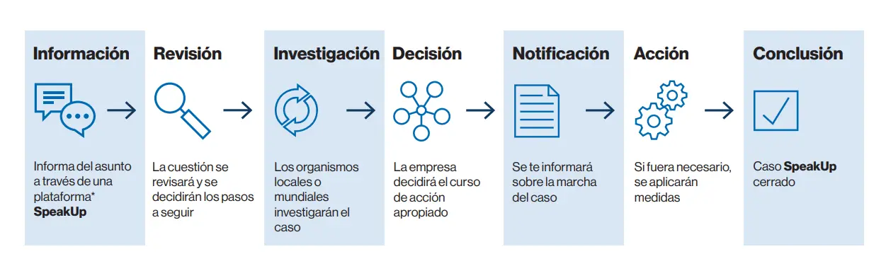 El mecanismo SpeakUp de Novartis está destinado para que los asociados de Novartis, los socios comerciales (por ejemplo, proveedores), los pacientes y demás personas, puedan informar acerca de conductas indebidas relacionadas con Novartis. Todos los reportes son tratados por un equipo de profesionales especializado, además protegemos a todos aquellos que reportan sus inquietudes en buena fe. Las conductas inapropiadas son todas aquellas conductas que puedan ser potencialmente ilegales, violen el Código de Ética de Novartis u otras políticas de la compañía, o que no son apropiadas en una persona, una profesión o una industria, y que normalmente son llevadas a cabo deliberadamente para eludir las normas con el propósito de obtener un beneficio personal o empresarial. Si identificas una conducta inapropiada, ¡nos gustaría saberlo!
