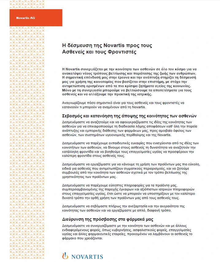 Μπορείτε να βρείτε όλες τις σημαντικές εταιρικές εκδόσεις της Novartis εδώ.
