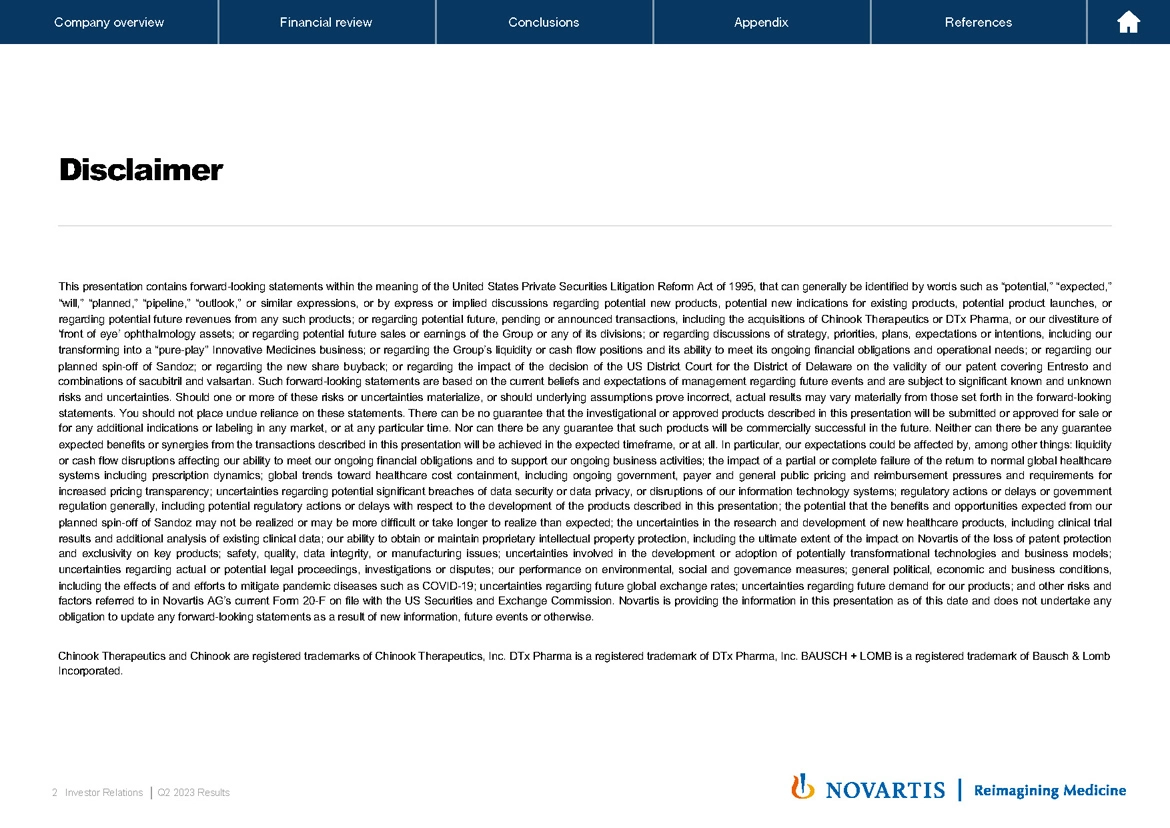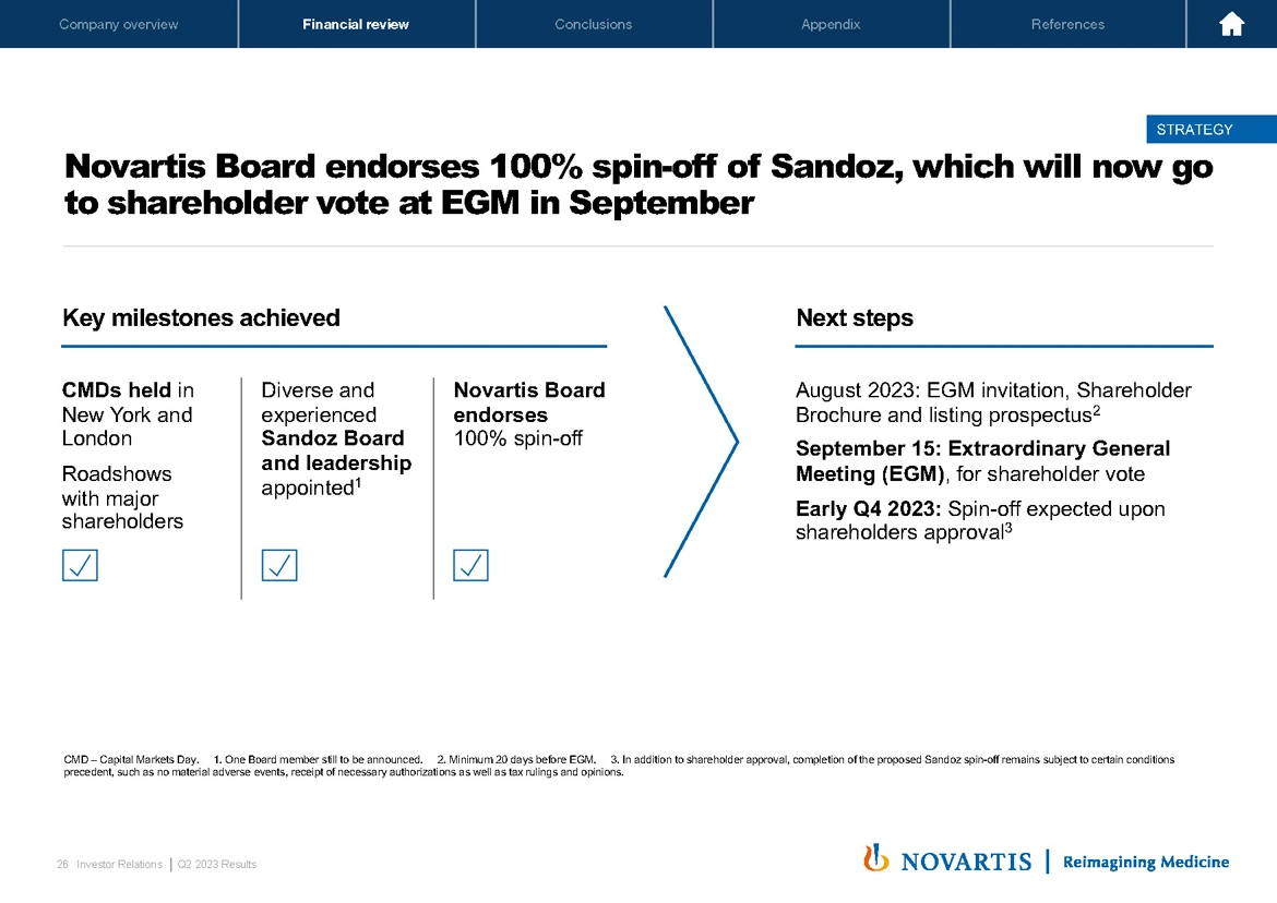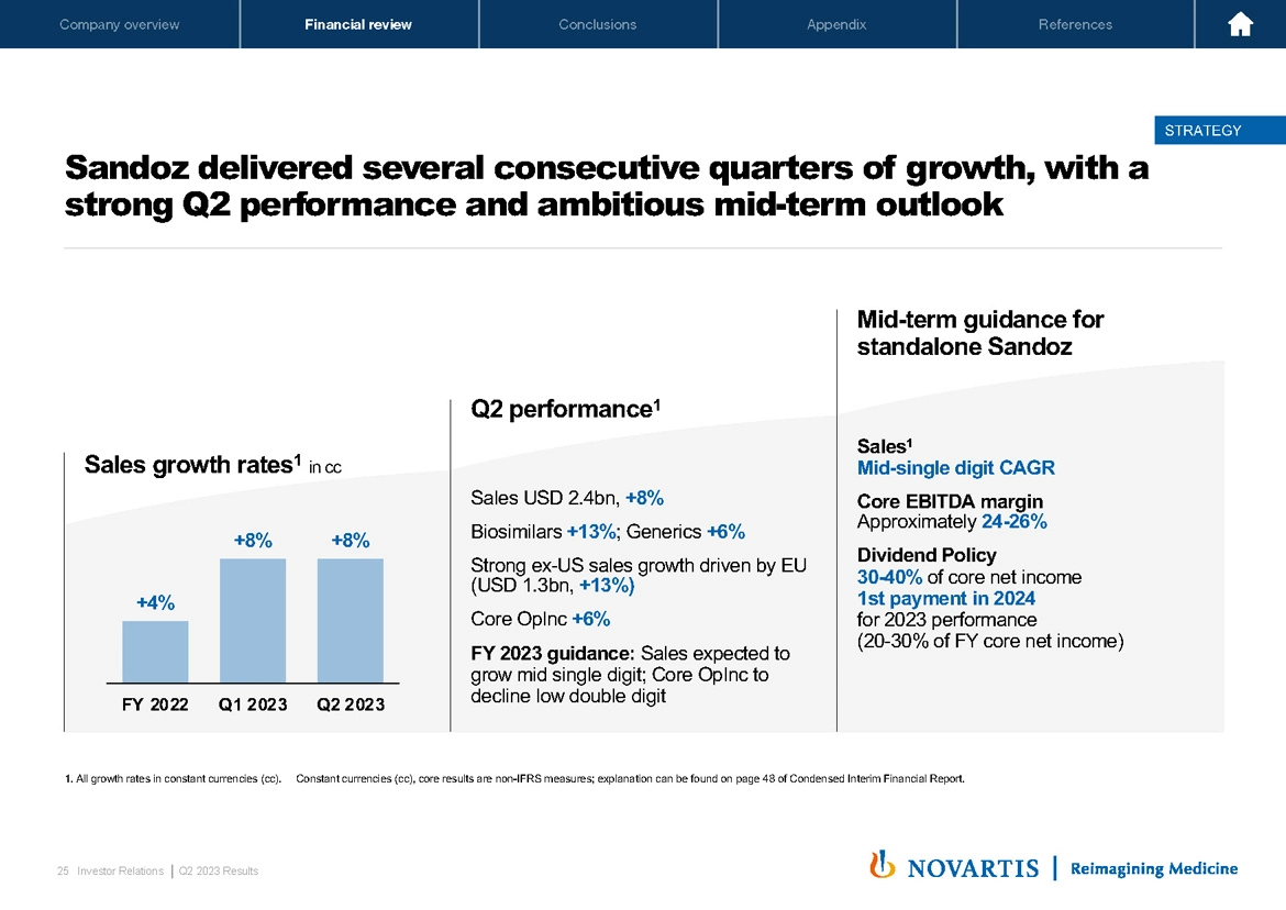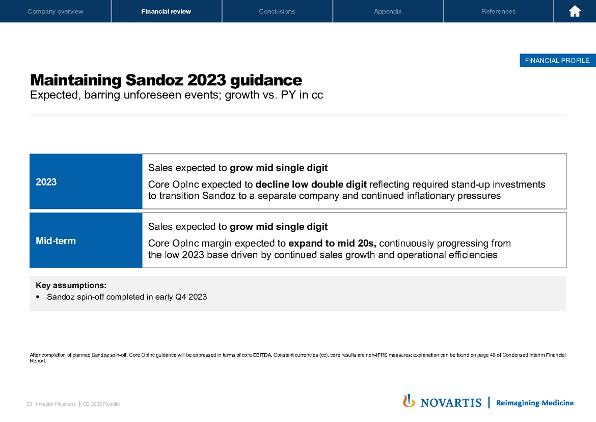 On the next slide, turning to Sandoz. Sandoz guidance is maintained for 2023. This guidance is obviously very conservative given the first half delivery, but it's also ahead of the spin-off and there are clearly upside potentials to that guidance.