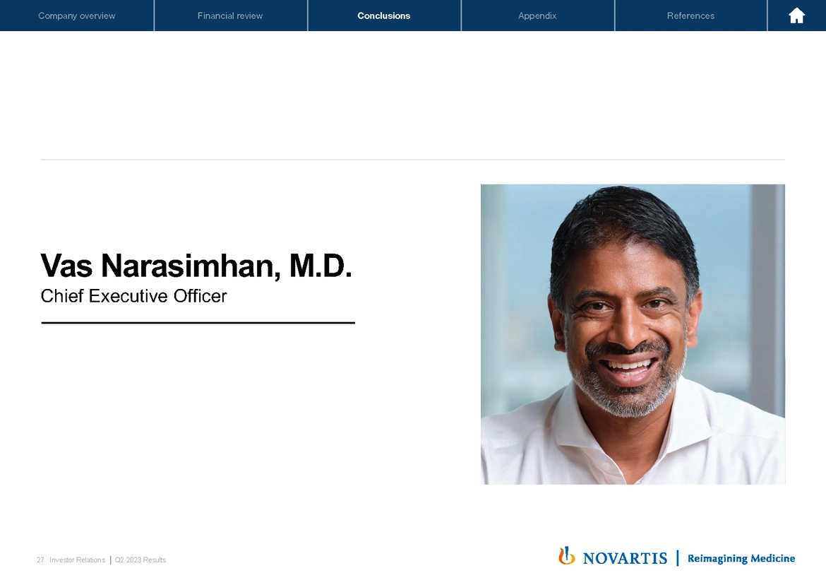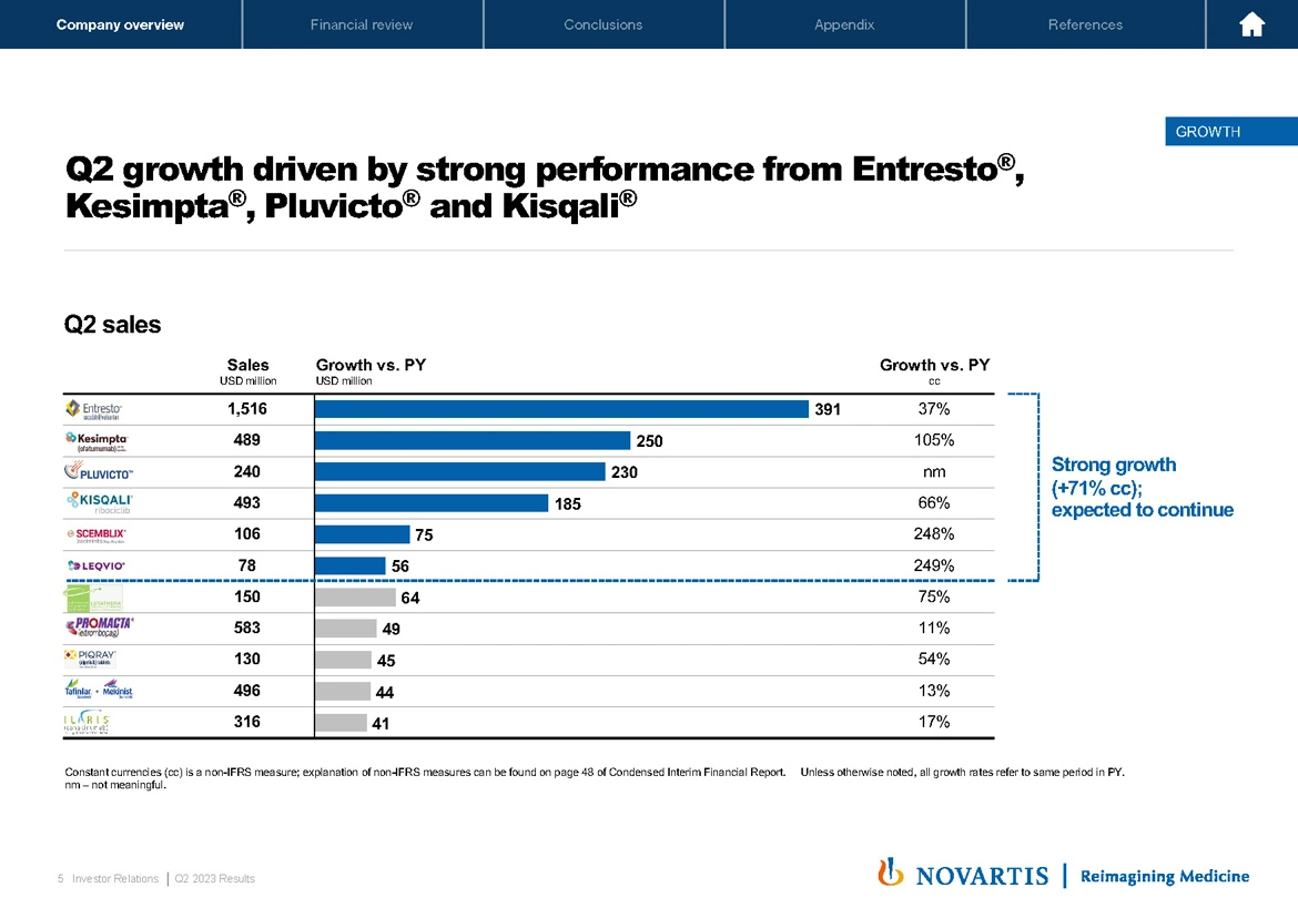 Now moving to the next slide. Our Q2 growth was driven by strong performance across our key growth drivers. You can see each of our key brands, Entresto®, Kesimpta®, Pluvicto®, Kisqali®, Scemblix®, Leqvio®, all delivered excellent performance in the quarter. And I think this reflects a combination of our new strategy or refreshed strategy of focus in five key therapeutic areas, as well as our streamlined organization from our transformation last year. That's delivering outstanding growth in market from a top line standpoint, but also delivering strong performance on the bottom line as well. We're going to take each one of those brands in turn in the subsequent slides.