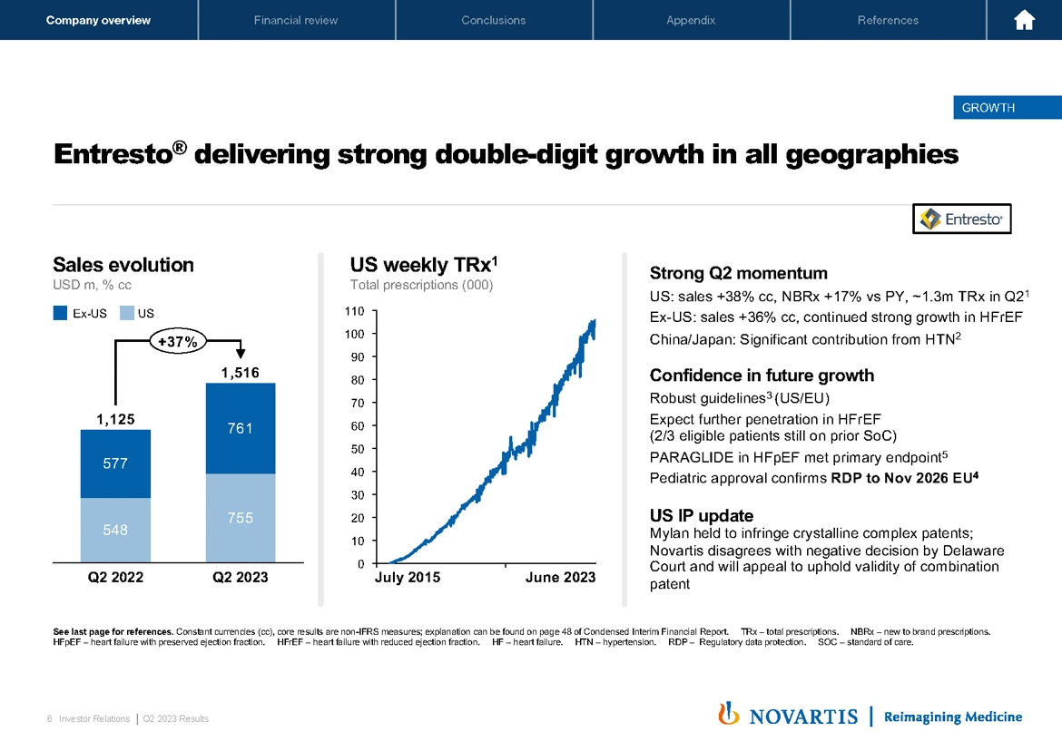 Now moving to Slide 6. Entresto® delivered strong double-digit growth in all geographies. The brand grew 37% on the quarter, and you can see robust growth, both ex-US and US On the US side, our weekly TRx prescriptions continue to grow robustly, 38% sales growth, 17% NBRx growth. So really outstanding performance on the US side. Ex-US, we had 36% constant currency growth, and that's driven by HFrEF, but as well our performance on hypertension in China and Japan.