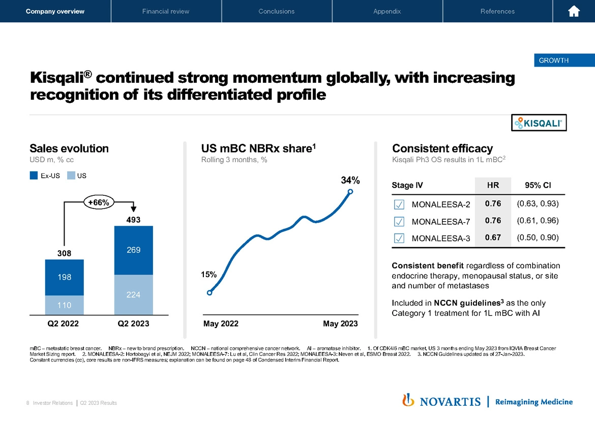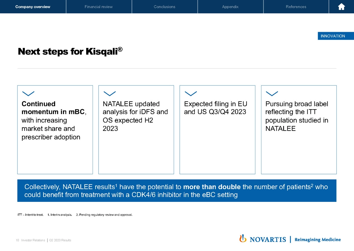 Now moving to Slide 10. The next steps for Kisqali® will be continued momentum in the metastatic breast cancer setting, where you see strong performance across our key geographies. And we want to continue to drive that momentum as we believe Kisqali® is becoming the standard of care in the metastatic space. NATALEE update and analysis for iDFS and OS is expected in the second half of 2023.