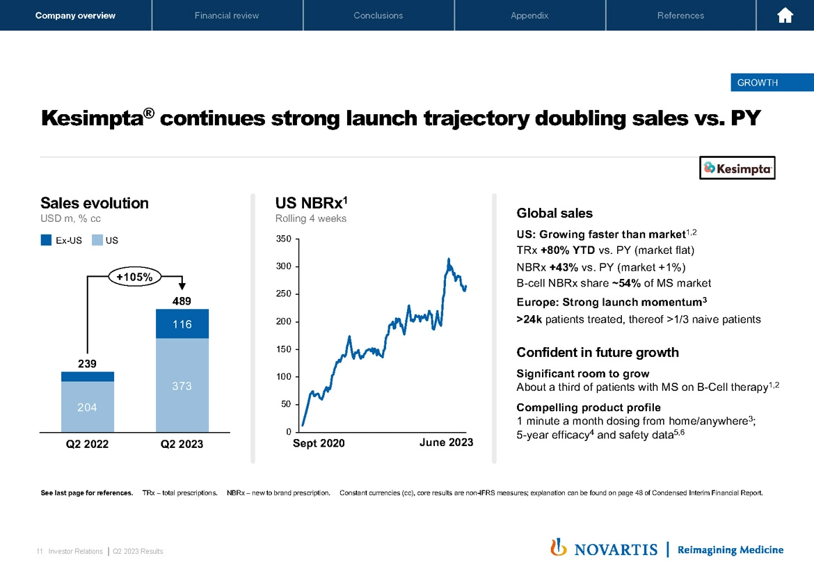 Now moving to Slide 11. Kesimpta® also had an outstanding quarter and continues its strong trajectory, doubling sales versus prior year. Sales were up 105% US NBRx, you can see here, trending very well on the rolling 4 weeks. The TRx in the US was up 80% and NBRx was up 43%. Our B-cell NBRx share is currently 54% of the market, and that, I think, will be a key driver going forward as the B-cell therapies continue to gain a larger and larger share of the MS market.