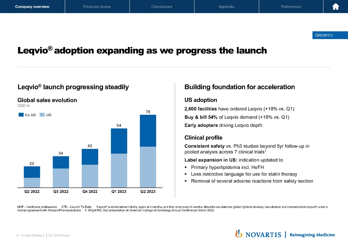 And moving to Leqvio®. The launch continues to progress steadily as we've outlooked, and we continue to gain broader and broader utilization and adapt amongst cardiovascular providers in the United States. Sales reached USD 78 million globally. We now have 2,600 facilities that have ordered Leqvio®, which is a solid increase versus quarter 1. We are expanding buy-and-bill as the primary mode of acquisition of Leqvio® consistently now over time.