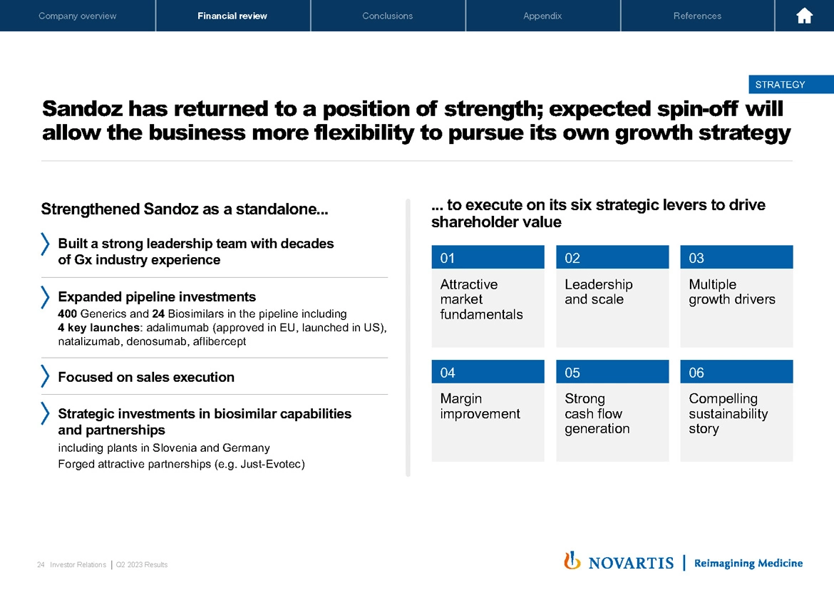 These strengths will allow Sandoz to execute on its six strategic levers that you see on the right side. I won't go into all the details here. But you have seen Richard and his team having outlined in detail for you all of these priorities during the most recent Capital Markets Days and IR roadshows.