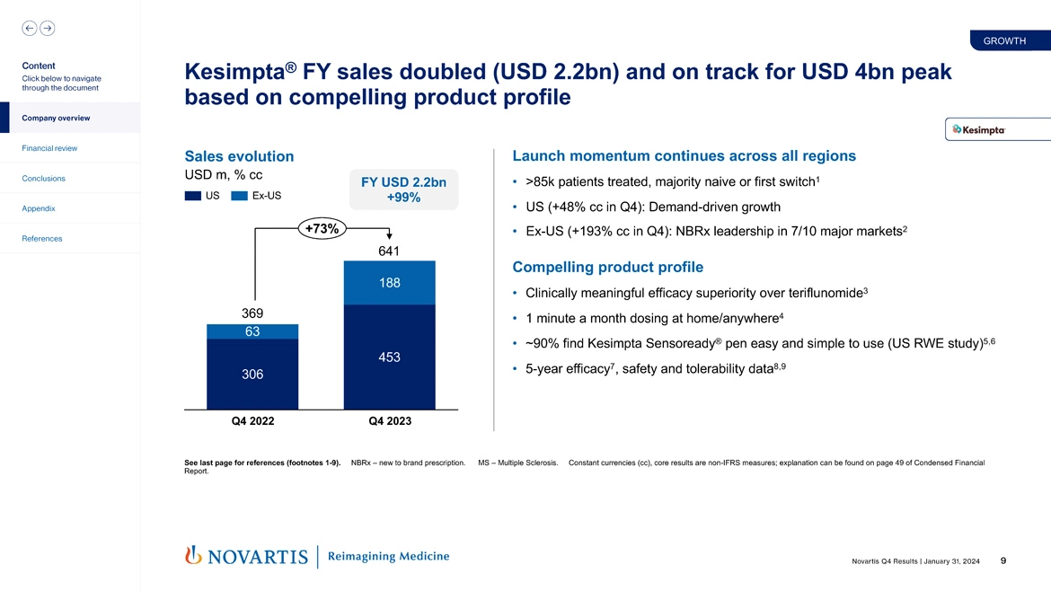 So moving to Slide 9. Kesimpta® sales in the full year doubled to USD 2.2 billion. We remain on track to reach our USD 4 billion peak sales guidance, strong growth in the US, but also now increasing growth in Europe and in the ex-US market. We currently see 85,000 patients treated with Kesimpta® today. Our US growth is 48% in constant currencies, ex US at 193%. And we have NBRx leadership now in 7 out of 10 major markets outside of the United States.