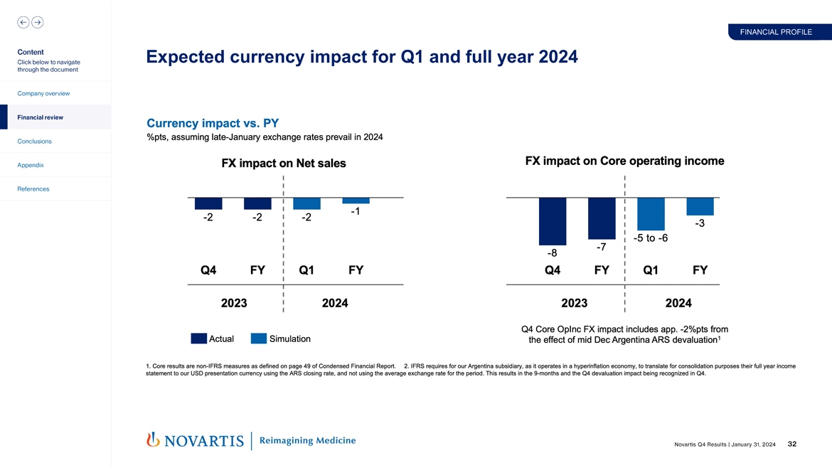 If late January rates prevail for 2024, we expect a full year impact of currencies to be less than '23, and on top line would be a negative 1%, and on the bottom line would be a negative 3 percentage points currency impact. And as a reminder, we do update this every month on our website as it is hard to forecast from the outside, but you get a monthly update on it. And with that, I hand back to Vas.
