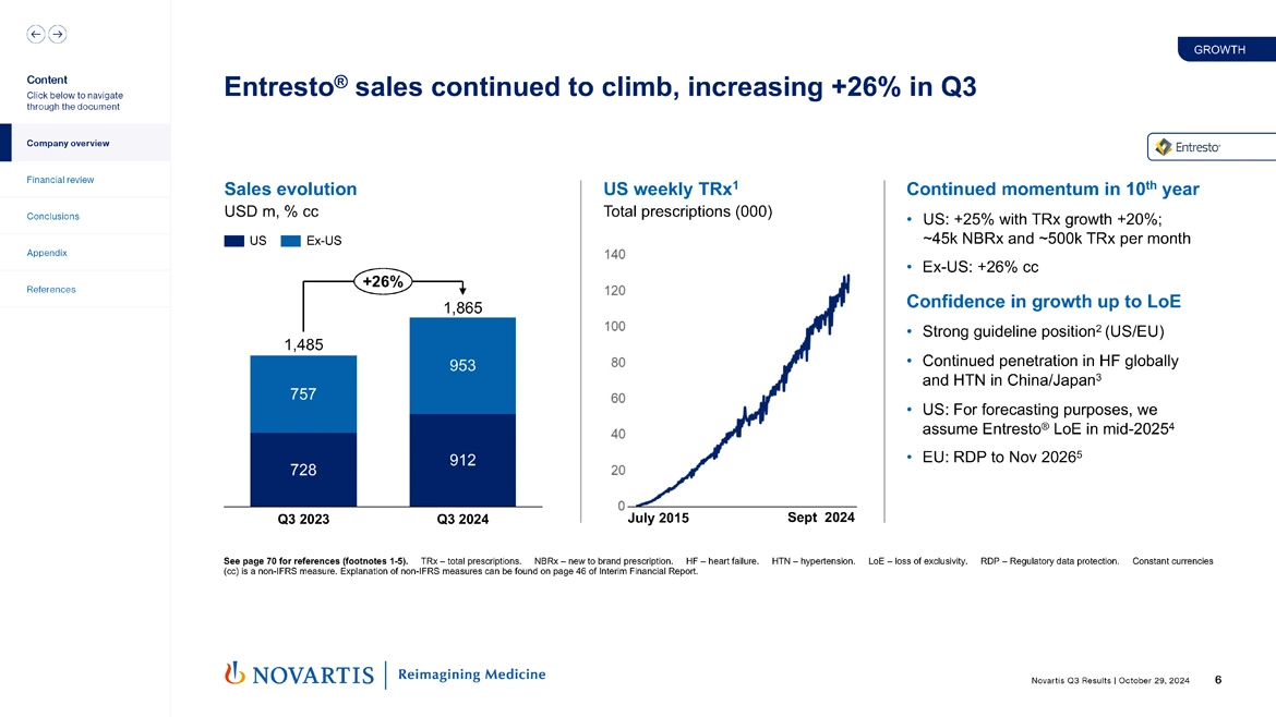 So moving to slide 6. Entresto® sales continue to climb as they have now for multiple years, increasing 26% in Q3. It's the tenth year now of continued momentum on this brand, which I think really shows our ability to create large and lasting cardiovascular medicines. 25% TRx growth, 20% NBRx growth, 500,000 TRxs per month, ex-US, we're growing 26%. So we're confident in the growth up to the LOE. We have strong guideline positions in the US and EU.
