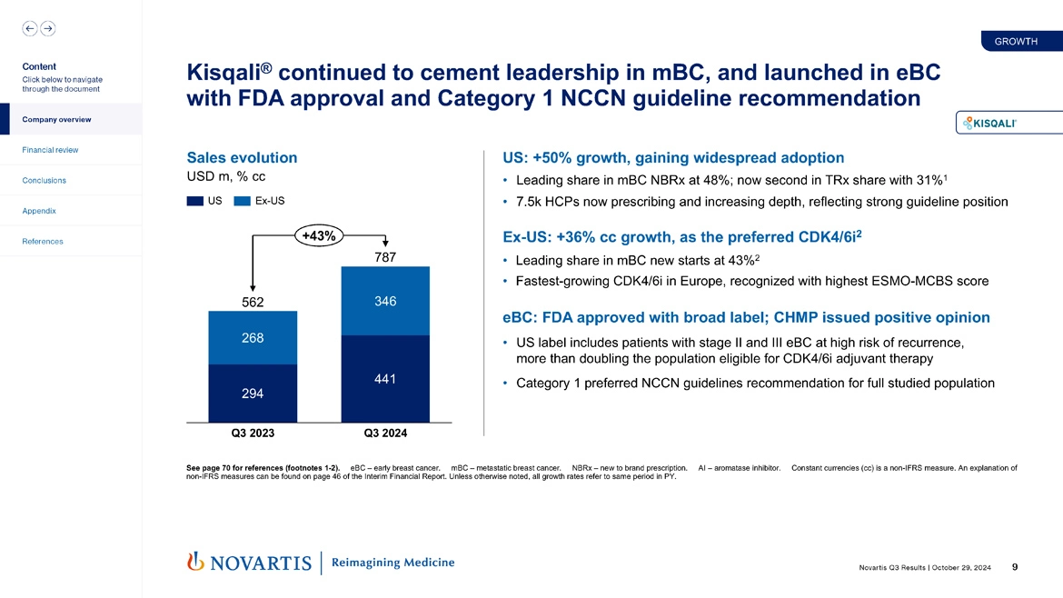 Now moving to slide 9. Kisqali® continued to cement its leadership in metastatic breast cancer and launched importantly in early breast cancer, as I mentioned. But perhaps most importantly, we achieved a category 1 NCCN guideline recommendation for the full Kisqali® population. Overall growth in the quarter was 43%. US is up 50%. It's really gaining widespread adoption, our NBRx share at 48%. We're now second in TRx share overall. We have over 7,000 physicians actively prescribing Kisqali® and I think reflecting our strong guideline position.