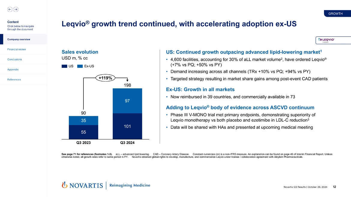 Moving to slide 12. Leqvio® continued its strong growth trend with accelerating adoption outside of the US. And we're very pleased by both the solid US performance both the acceleration that we're seeing in our international markets. We have continued growth that's outpacing the overall advanced lipid lowering market. 4,600 facilities have ordered Leqvio®, which is a substantial increase versus prior year. We see demand increasing across all channels. And I'd say our targeting strategy in the US to really focus on patients and physicians that are treated in the post-event setting where there's a high propensity to add an additional lipid-lowering therapy has worked really well.