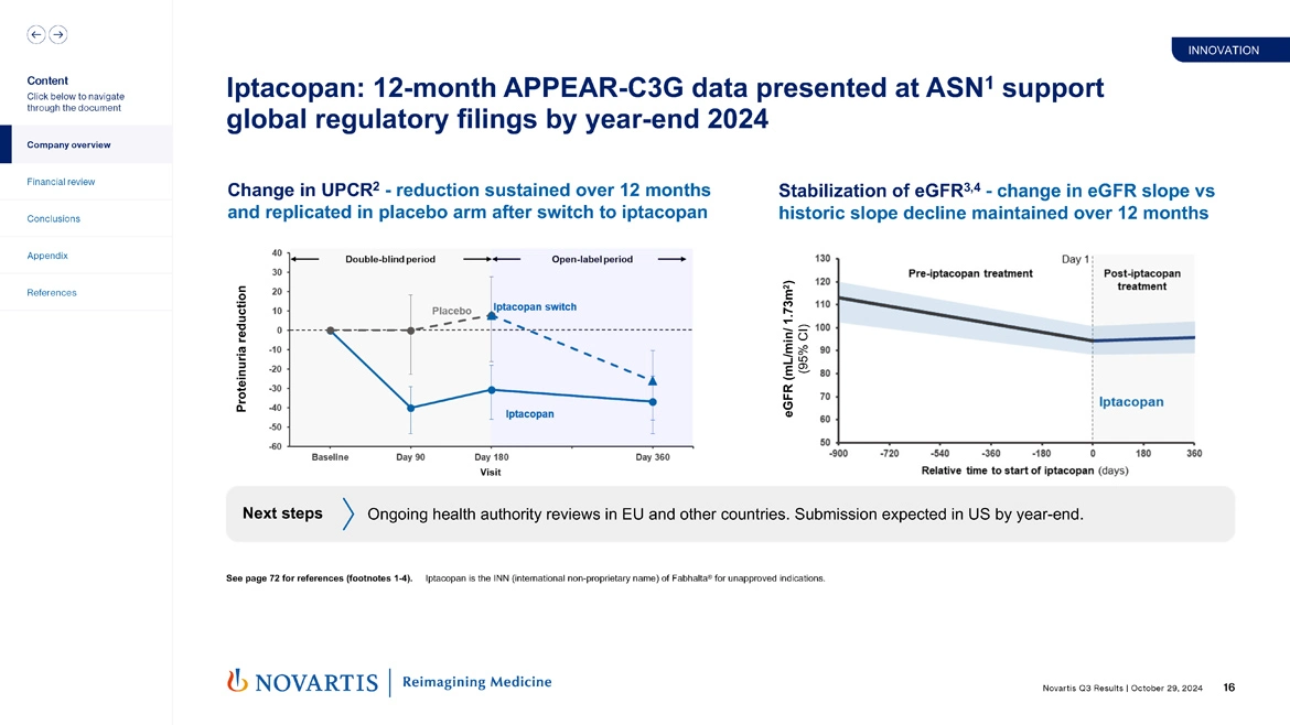 And if we go to the next slide, slide 16, we released results over the weekend of the 12-month APPEAR-C3G data at ASN. On the left-hand side, you see the sustained proteinuria reduction over 12 months and that that was replicated in the placebo arm after switch to iptacopan. So that was very positive and something the regulators had asked us for.
