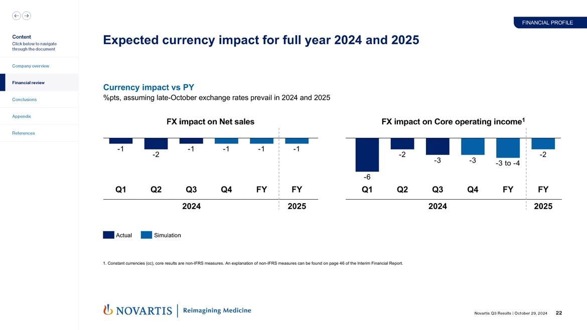 If late October rates were to prevail for the remainder of 2024, we would expect full year currency impact to be again around 1% negative on net sales and negative 3 to 4 percentage points on core operating income. As we already start to look forward into 2025 again to inform your modeling assumptions, we expect a negative 1% point impact on net sales and negative 2 percentage points on core operating income. Again, if currencies stay for next year where they are right now.