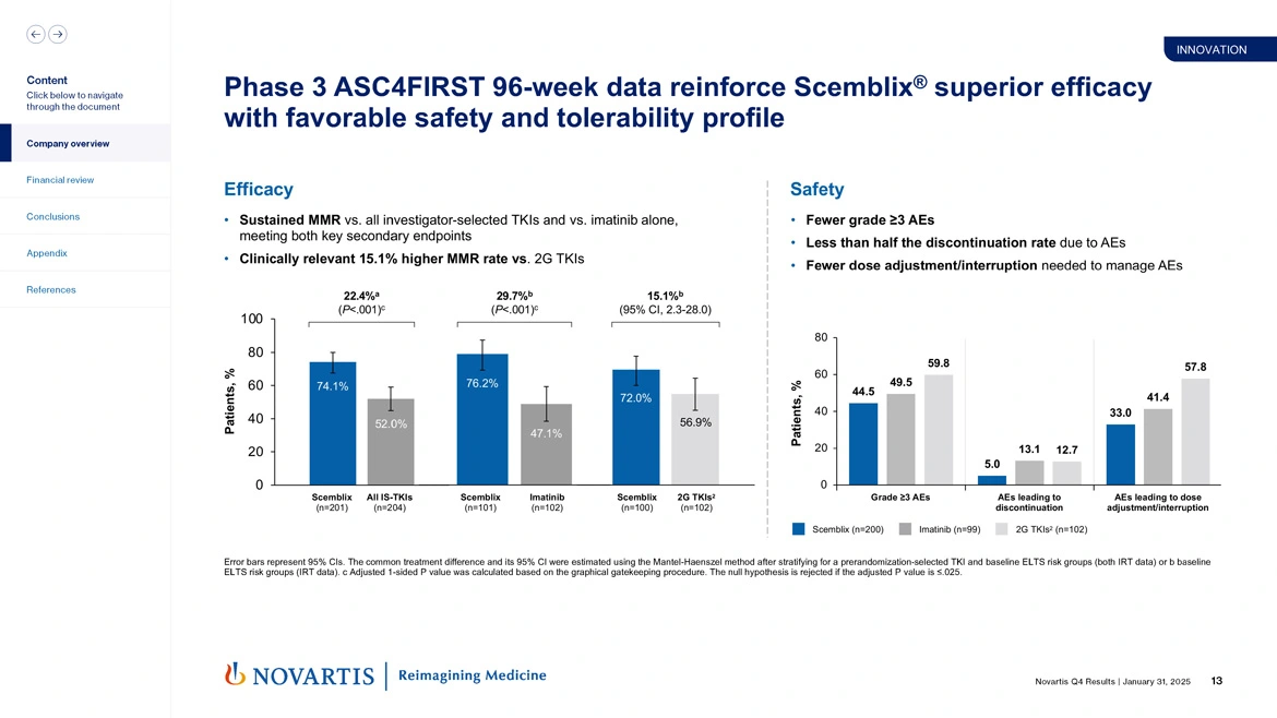 Now, going to slide 13. That ASC4FIRST 96-week data reinforce superior efficacy and safety. When you look at the data set here at 96 weeks on the left-hand side of the chart, you can see against all TKIs, we continued to show a significant improvement, a statistically significant improvement in major molecular response similarly versus imatinib a significant improvement in major molecular response. And while we weren't powered our point estimate difference against second gen TKIs continues to improve as well over time.