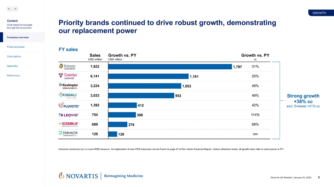 So moving to slide 5. Our priority brands continued to drive robust growth in the quarter. And I think importantly, that demonstrates we have the replacement power to consistently grow through the end of the decade. Overall, this portfolio of brands grew 38% in constant currencies and excluding Entresto®, grew 41%. So we feel very good about the momentum we have. And this is what gives us confidence in the 5% plus sales guidance out to 2029 and the mid-single-digit growth we believe we can deliver in the long term.