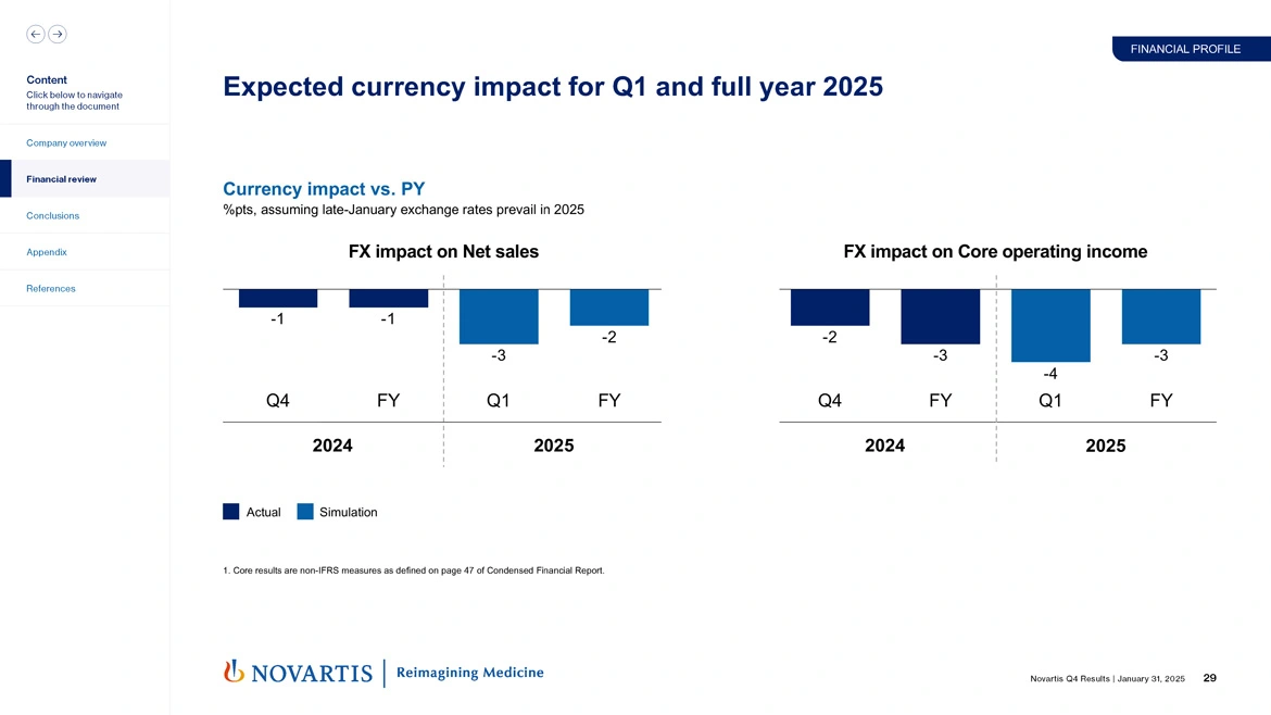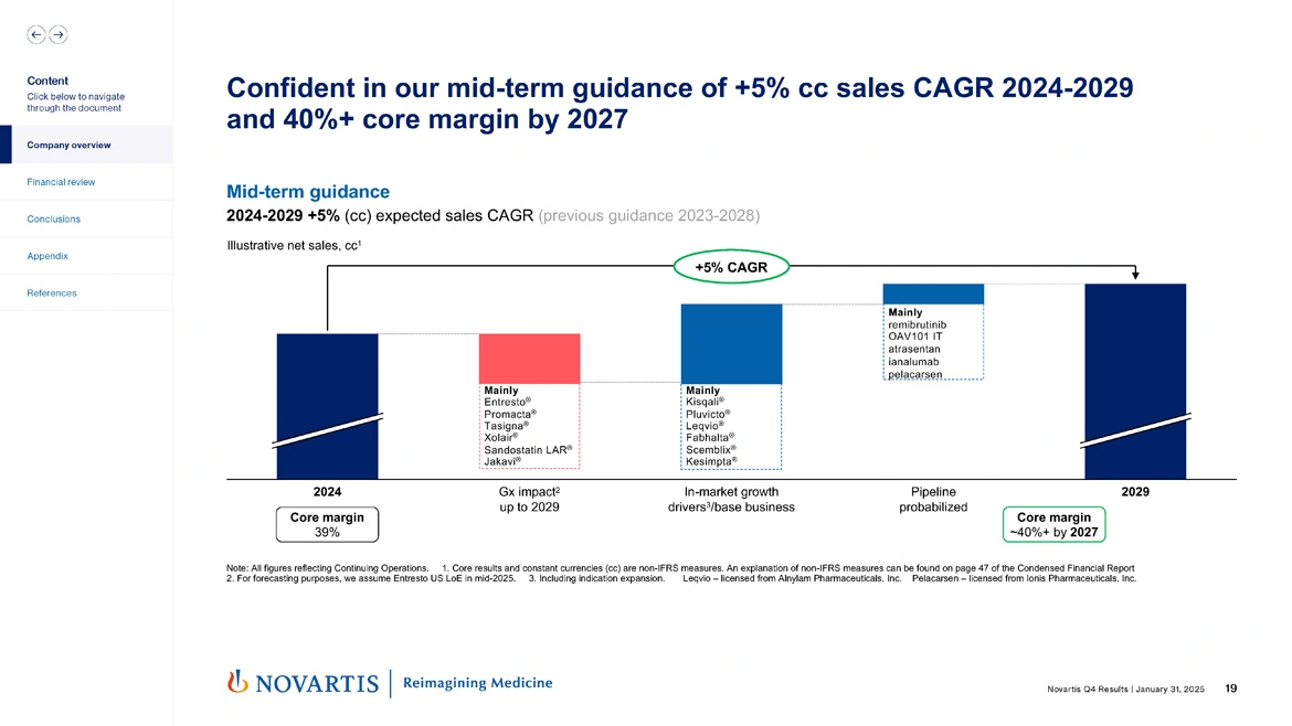 Moving to slide 27. For full year 2025, we expect continued strong sales growth with margin expansion, with sales growing mid- to high single digit and core operating income growing high single to low double digits. Embedded in our guidance is the financial planning assumption that Tasigna®, Promacta® and Entresto® US generics entry occurs in the middle of, and I'll give some more detail on expected half one versus half two dynamics on the next slide. To complete our full year guidance, please note that we expect core net financial expenses to be around USD 1 billion, and our core tax rate to be around 16% to 16.5%.
