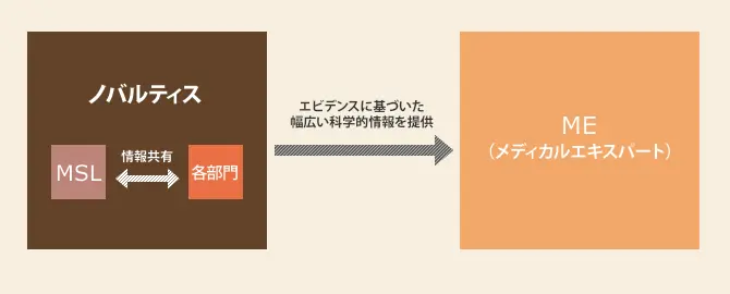 MSLは自社の製品情報に限らず、疾患の情報、最新の論文など幅広い科学情報を提供していくもので、開発や営業の部門とは完全に独立して活動を展開し、信頼関係を構築することに努めます。