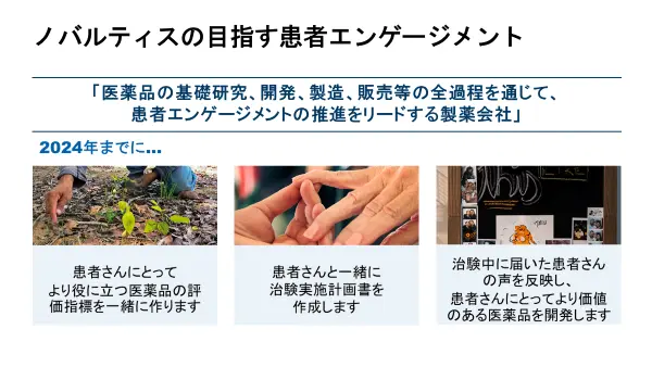 ノバルティスでは、患者さんとの効果的かつ積極的な交流の促進への取り組みを「患者エンゲージメント(Patient Engagement)*1」と定義しています。