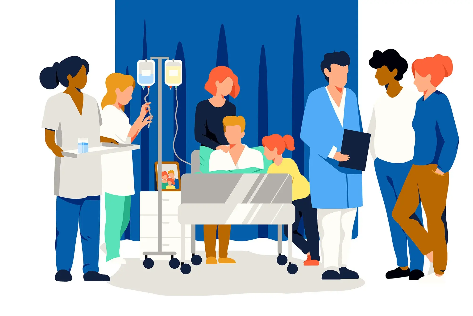 患者さんはケアチームと相談した後、CAR-T細胞療法を試してみると決心しました。主治医は認定治療センターを紹介し、そこには、細胞の採取や注入、治療中や治療後のケアなどの専門的な訓練を受けたチームがいました。