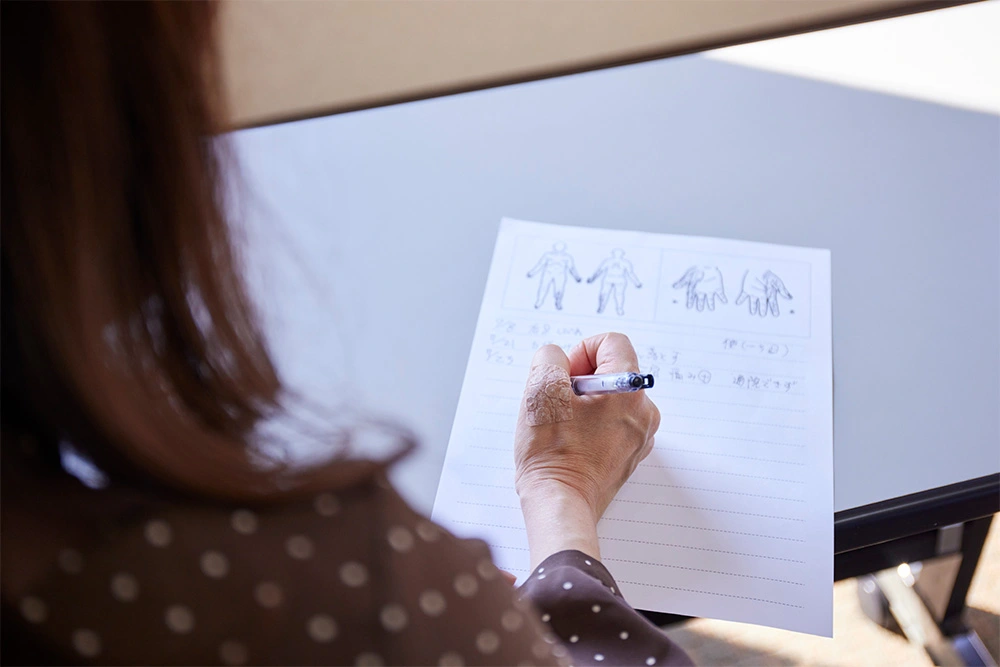 えみ子さんも主治医とのコミュニケーションを深めるために、自分自身の状態を記した手作りのカルテに日々の症状や体の状態を書き込み、それを見てもらっていると言います。明るく話してくれるえみ子さんの姿から、多発性硬化症と共に前向きに生きようという決意を感じることができました。