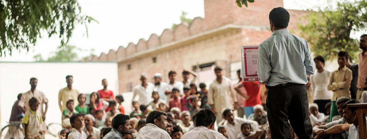 しかし、現場ではアローギャ・パリヴァールはまだ多くの課題に直面しています。その活動の大部分は、クマールや、プログラムで活動する他の健康教育担当者約250人の日々の負担となっています。多くの村では、公認の医師よりも伝統的な民間療法を施す人を信頼したり、医薬品を共有したり、必要な栄養摂取を怠ったりする状況がみられます。屋外での排泄など、個人的な信仰や習慣が、文化や環境により深く根付いています。当初、衛生や具合が悪くなった場合の対処法に関するクマールの提案は、疑いと時には敵意を持って迎えられました。「たくさんの人を集められたことなどありません」と、このプログラムで4年間活動してきた27歳のクマールは言います。「家に帰って泣きました。みんな出ていってしまうんです。人々は、『我々のほうが知っている。私達は忙しいんだ。邪魔をするな』と言います」
