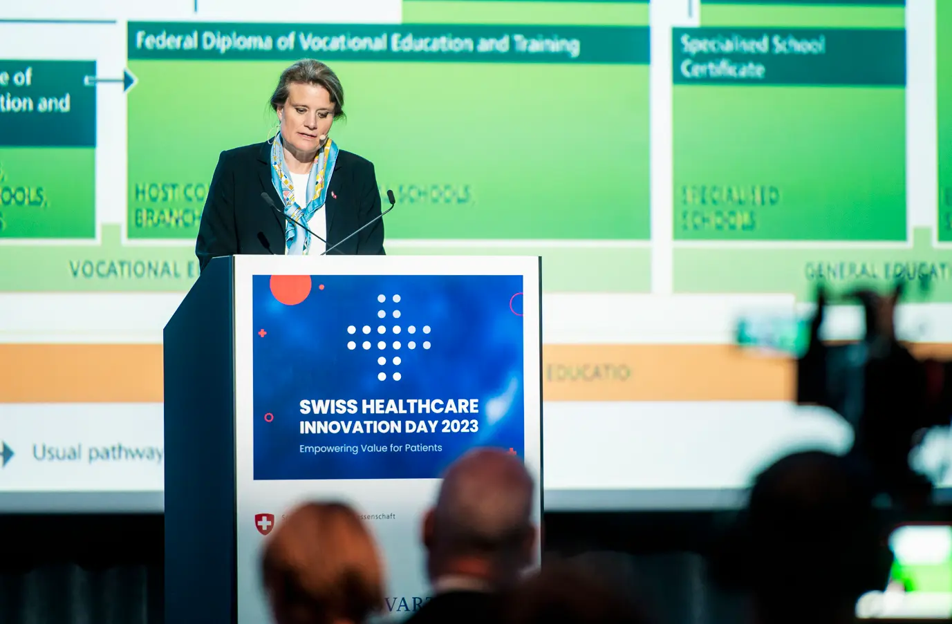 Uzsverot pieredzes apmaiņas vērtību par inovāciju iekļaušanu veselības aprūpes sistēmā starp Šveices un Latvijas privātā un publiskā sektora speciālistiem, konferences atklāšanā veselības ministre Līga Meņģelsone uzsvēra1: “Nepieciešamība pēc saskaņotas rīcības un sadarbības veselības jautājumos vienmēr ir bijusi aktuāla, sevišķi šodien. Redzam, ka izaicinājumi, ar kuriem saskaras Latvijas veselības aprūpes nozare, saglabājas arī citās valstīs, un mūsu ciešā sadarbība ir galvenais elements to risināšanā. Tas īpaši attiecas uz konferencē izceltajām tēmām: pētniecība un inovācijas medicīnā, uz pacientu vērsta veselības aprūpe, reto slimību cēloņu novēršana, inovāciju veicināšana veselības aprūpes sistēmā. Šajā cēlajā misijā mēs strādājam kopā patiesā partnerībā un mūsu kopējais mērķis ir turpināt darbu pie veselības aprūpes sistēmas attīstības, kas dod iespēju pacientiem.”