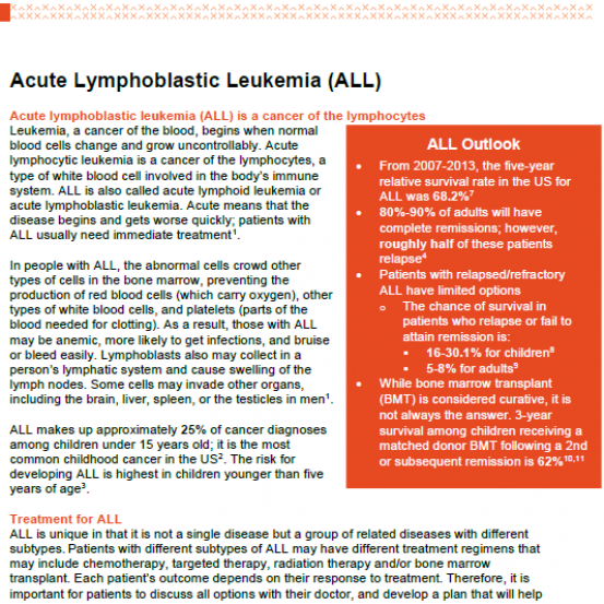 Acute lymphoblastic leukemia (ALL) is a cancer of the lymphocytes.Leukemia, a cancer of the blood, begins when normal blood cells change and grow uncontrollably. Acute lymphocytic leukemia is a cancer of the lymphocytes, a type of white blood cell involved in the body’s immune system.