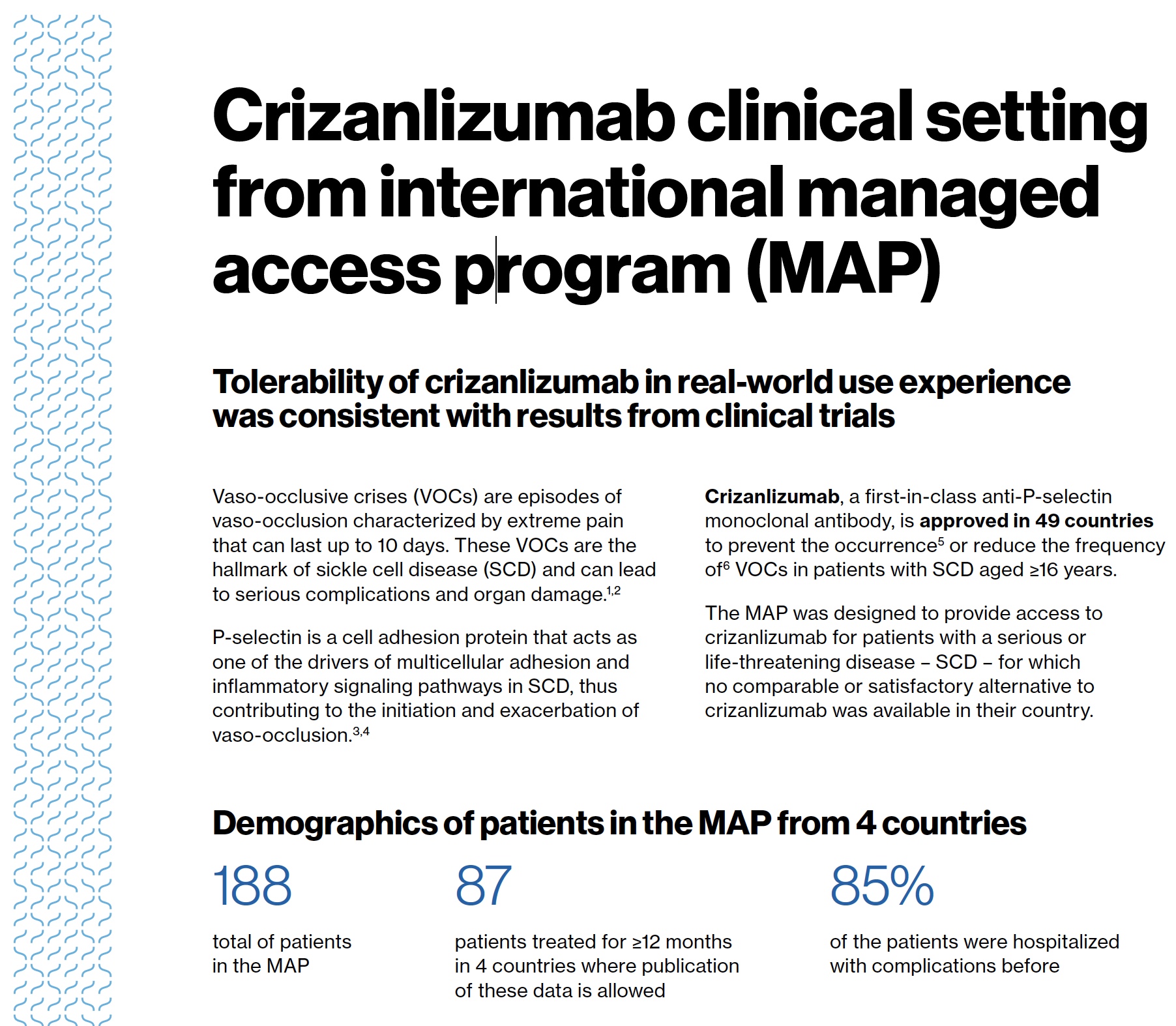 Crizanlizumab clinical setting from international managed access program (MAP) infographic