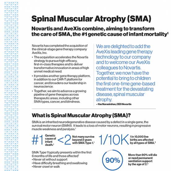 Novartis and AveXis combine, aiming to transform the care of SMA, the #1 genetic cause of infant mortality.