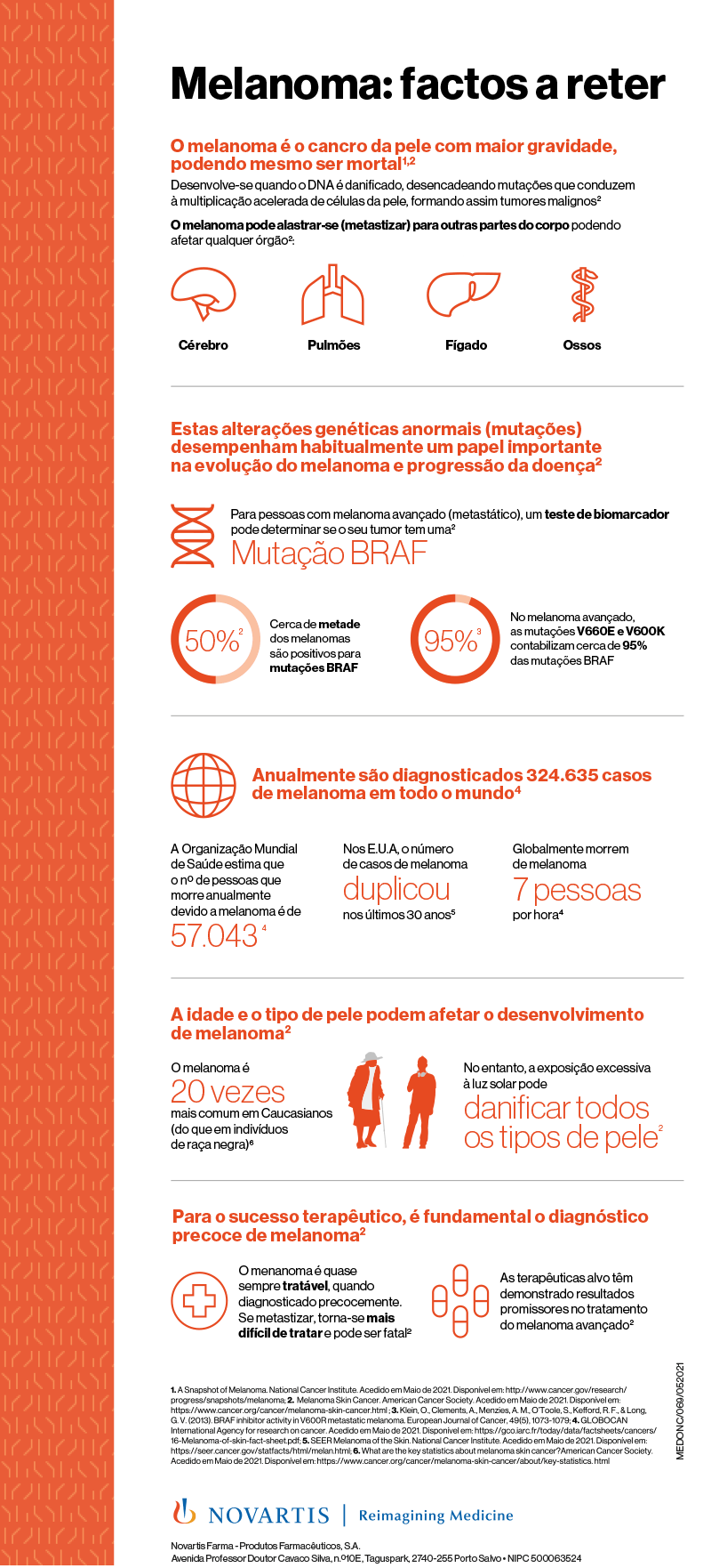 O melanoma é o tipo de cancro de pele mais agressivo, caracterizado pelo crescimento descontrolado de células anormais da pele, causado por mutações ou defeitos genéticos no DNA, na maioria dos casos decorrente da radiação ultravioleta.1 Um estudo recente estima que, em Portugal, 276 doentes com melanoma não foram diagnosticados durante a pandemia, o que corresponde a 21% dos casos.2