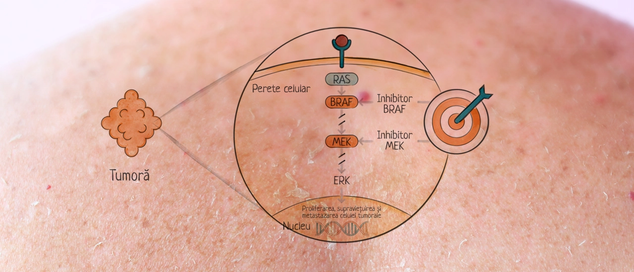Terapie țintită: Tip de terapie medicamentoasă care are scopul de a bloca molecule anormale din celulele tumorale care fac ca acestea să se dividă incontrolabil. De exemplu, inhibitorii BRAF și MEK acționează țintit asupra melanomului care prezintă anumite mutații genetice.