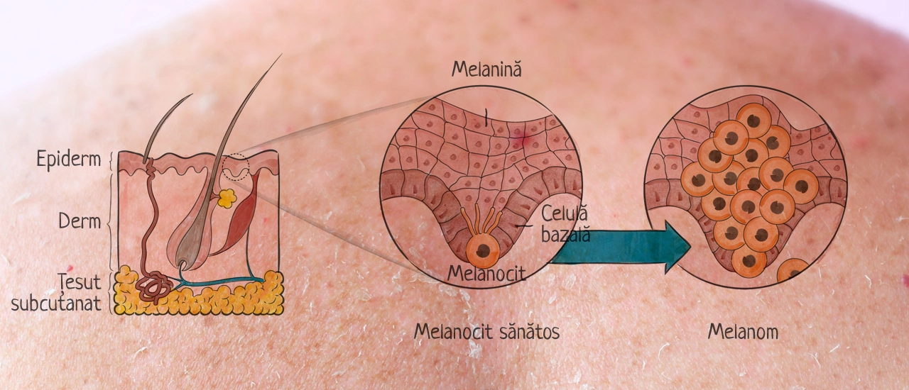 Melanomul este o formă de cancer cu evoluție agresivă, care se dezvolta cel mai adesea la nivelul pielii și poate să apară la orice vârstă. Acesta se dezvoltă în celulele pigmentare numite melanocite, care sunt situate în stratul extern al pielii (epiderm) și care produc melanina, un pigment care ajută la protecția pielii împotriva radiațiilor ultraviolete (UV).1,2