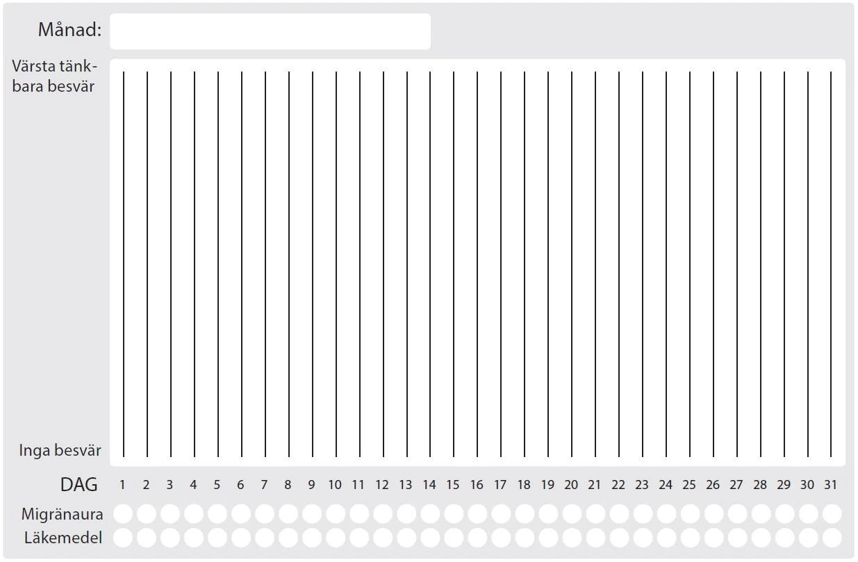 Personer med migrän rekommenderas ofta att föra en Huvudvärksdagbok för att kunna fastställa rätt huvudvärksdiagnos, tyda huvudvärksmönstret samt utvärdera effekten av olika behandlingsmetoder.