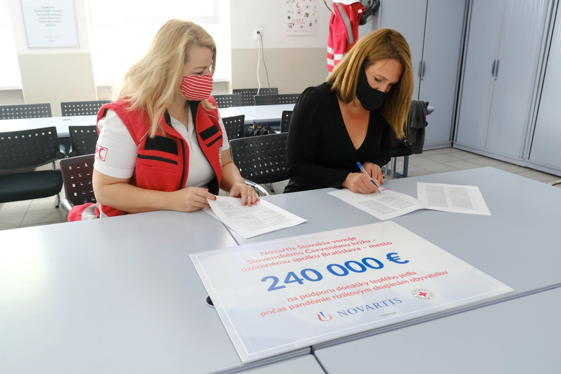 Novartis Slovakia s.r.o. poskytol grant vo výške 240 000 EUR Slovenskému červenému krížu – územný spolok Bratislava-mesto na podporu donášky teplého jedla rizikovým skupinám obyvateľov zasiahnutých pandémiou COVID-19.