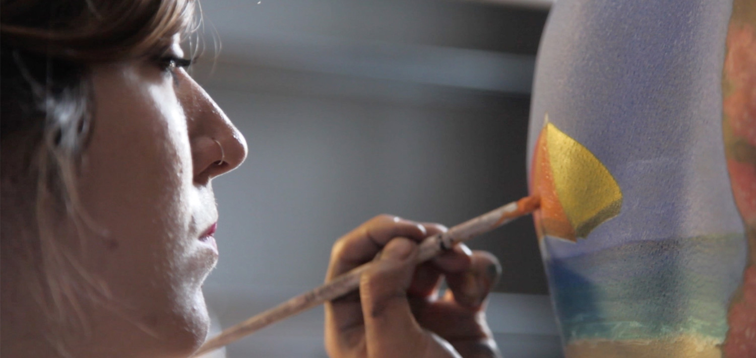 Bodypainter Natalie Fletcher paints on model
