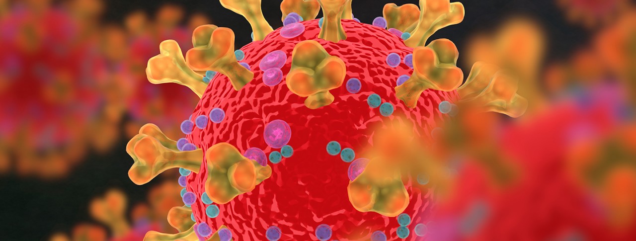 Main image from Adobe Stock: 3d render of Sars-CoV-2, the virus that causes COVID-19.