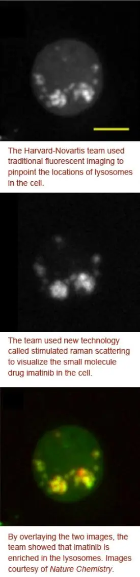 A study published online in Nature Chemistry on May 25 is the culmination of one such collaboration. Researchers used a novel imaging technique invented at Harvard to visualize the small-molecule drugs imatinib and nilotinib inside the cell without using molecular tags.